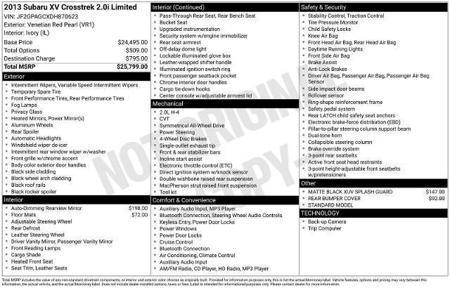 2013 Subaru XV Crosstrek 2.0i Limited Venetian Red Pearl AWD Lineartronic CVT 2.0L 16V DOHC