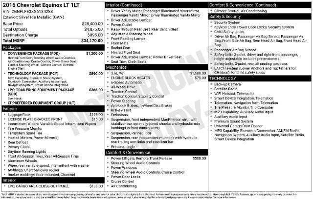 2016 Chevrolet Equinox LT Silver Ice Metallic AWD 6-Speed Automatic with Overdrive 3.6L V6 SIDI
