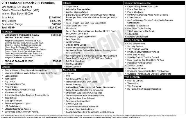 - Moonroof & Pwr Gate & Navi & EyeSight & Blind Spot