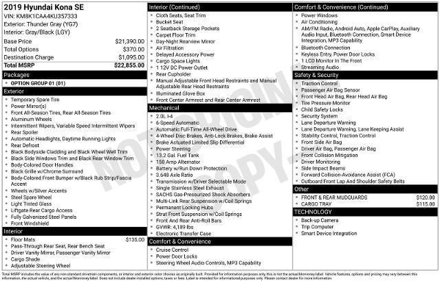 2019 Hyundai Kona SE Thunder Gray AWD 6-Speed Automatic with Shiftronic I4
