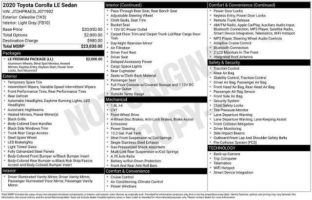 2020 Toyota Corolla LE
