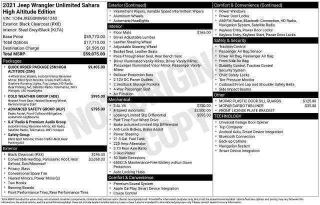 2021 Jeep Wrangler Unlimited Sahara High Altitude Black Clearcoat 4WD 8-Speed Automatic 3.6L V6 24V VVT