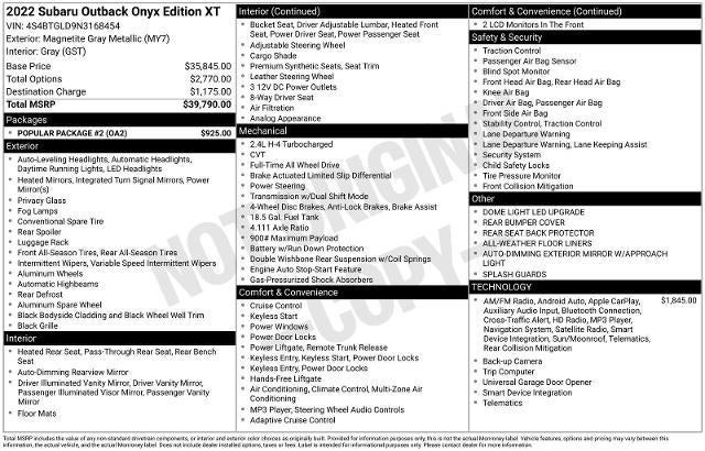 As a Subaru Certified Pre-Owned vehicle, this Outback Onyx Edition XT has undergone a rigorous 152-point inspection and comes with a comprehensive warranty and roadside assistance program. You can drive with confidence, knowing that this vehicle has been meticulously maintained and is ready to provide you with years of reliable and enjoyable ownership.