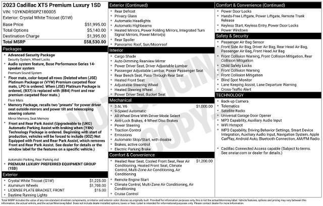 2023 Cadillac XT5 Premium Luxury Crystal White Tricoat AWD 9-Speed Automatic 3.6L V6 DI VVT