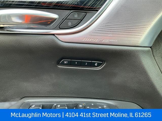 4-Wheel Disc Brakes, 8-Way Power Driver Seat Adjuster, ABS brakes, Alloy wheels, Auto High-beam Headlights, Automatic Emergency Braking, Automatic temperature control, Bose Performance Series Audio System, Brake assist, Driver & Front Passenger Heated Seats, Dual Driver Info Center Display Gauge Cluster, Dual front impact airbags, Dual front side impact airbags, Electronic Stability Control, Four wheel independent suspension, Front & Rear Park Assist, Front anti-roll bar, Front dual zone A/C, Fully automatic headlights, Heated door mirrors, Heated steering wheel, Illuminated entry, Inside Rear-View Auto-Dimming Mirror, Knee airbag, Low tire pressure warning, Memory seat, Navigation System, Occupant sensing airbag, Panic alarm, Passenger vanity mirror, Power door mirrors, Power driver seat, Power Liftgate, Power moonroof: UltraView, Power steering, Power windows, Premium Luxury Package 1SD, Radio: Cadillac User Experience w/Embedded Nav, Rain sensing wipers, Rear air conditioning, Rear window defroster, Rear window wiper, Remote keyless entry, Ride & Handling Suspension, Security system, SiriusXM w/360L, Speed control, Steering wheel memory, Steering wheel mounted audio controls, Teen Driver, Telescoping steering wheel, Tilt steering wheel, Traction control, Turn signal indicator mirrors, Ventilated Driver & Front Passenger Seats.