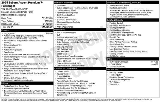 Discover the exceptional 2025 Subaru Ascent Premium, a versatile and well-equipped SUV that's ready to elevate your driving experience. With its sleek exterior, advanced technology, and impressive capabilities, this Ascent is the perfect companion for your adventures.